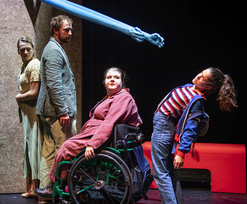 Als het anders loopt Muziektheater vol beeldende poëzie en dans Hallo, wij zijn Het Houten Huis, Plan d- en Club Guy & Roni. Samen hebben we Als het anders loopt gemaakt, een beeldende muziektheatervoorstelling vol dans en beweging. In deze les bereiden we je graag voor op je bezoek aan deze theatervoorstelling en nemen we je mee in een wereld vol verbeelding. Start hier Bespreek met elkaar: Wie is er wel eens naar het theater geweest? Wat voor soort voorstelling was dat en wat vond je ervan? Wat is ‘beeldend muziektheater’ eigenlijk? Wat is verbeelding? Volgende Vorige Met de volgende opdrachten gaan jullie zelf aan de slag met jullie verbeeldingskracht. Op deze manier duiken jullie in dezelfde creatieve wereld als onze makers en ervaren jullie hoe je je verbeeldingskracht kunt gebruiken om naar een voorstelling te kijken. Bedenk: er is geen goed of fout. Probeer dus open te staan voor elkaars ideeën en ervaringen. Volgende Vorige Laat één iemand de tekst over de voorstelling voorlezen. Doe je ogen dicht en luister naar de tekst. Probeer het voor je te zien. De tekst over de voorstelling vind je via de QR-code of via www.hethoutenhuis.org/tekst Volgende Vorige Bespreek met je buurman/-vrouw: Wat voor beelden heb je gezien? Waar was je? Volgende Vorige Neem een vel papier en een potlood voor je.Je gaat straks luisteren naar muziek uit de voorstelling met je ogen dicht. Volgende Vorige Bedenk tijdens het luisteren: Welke beelden komen er voorbij in je hoofd? Welk gevoel roept de muziek bij je op? Waar bevind je je? Wat zie je om je heen? Verandert er iets? Volgende Vorige Zodra de muziek is afgelopen, teken of schrijf je op je vel papier wat er in je opkwam tijdens het luisteren van de muziek — je krijgt 3 minuten. Bespreek met elkaar wat je hebt getekend of hebt opgeschreven. Volgende Vorige Verdeel de klas in groepjes van drie of vier. Kies één van de zinnen op de volgende slide en bedenk hierbij minimaal vijf bewegingen. Wees niet bang om het groot te maken!Gebruik de ruimte in de klas (beweeg bijvoorbeeld van de ene kant naar de andere kant van het lokaal). Volgende Vorige ‘Mijn hoofd voelt zo zwaar dat ik niet meer kan nadenken.’ ‘Ik zweef voorbij, ik stijg op, en niemand lijkt mijte kunnen vangen.’ ‘Ik voel muren om me heen die er niet zijn,maar steeds dichterbij komen.’ Volgende Vorige Laat jullie bewegingen achter elkaar zien aan de rest van de klas (vertel je zin niet). Wat ziet iedereen? Kunnen ze raden welke zin jullie hadden? Volgende Vorige Zet er verschillende muziekjes onder. Als je wilt kun je deze Spotify lijst gebruiken. Je vindt hem ook via de QR-code. Wat verandert er? Volgende Vorige In de wereld van theater duik je vaak in iemands verbeelding. Soms lijkt het op hoe de echte wereld is, soms is het net een droom. Vaak ontstaan onze voorstellingen ook vanuit droombeelden van onze regisseur Elien. Volgende Vorige Wat zie jij op deze beelden? Volgende Vorige Tijdens het kijken van de voorstelling kan het zijn dat jij net iets anders ziet, hoort of ervaart dan degene die naast je zit. Dat kan natuurlijk, want bij het kijken naar theater is er geen goed of fout, er is alleen jouw eigen interpretatie. Volgende Vorige Bekijk de teaser van de voorstelling Als het anders loopt Volgende Vorige Bespreek na het bekijken van de trailer het volgende: Omschrijf in 1 woord wat je hebt gezien Herken je dingen die jullie eerder hebben bedacht of gemaakt? Welke personages heb je gezien? Wat zouden ze daar doen? Waarom denk je dat de voorstelling Als het anders loopt heet? Volgende Vorige In de trailer komen ook mensen voor die er misschien anders uitzien dan jij, of dan je gewend bent om je heen te zien. Zo zit er in de voorstelling iemand in een rolstoel, en iemand zonder armen en benen. Heb je wel eens iemand gezien die heel anders was, en hoe reageerde je daar toen op? Hoe zou jij (kunnen) reageren als je zo iemand tegenkomt? Bedenk een paar positieve en negatieve manieren. Stel dat je zelf een lichamelijke of geestelijke beperking had, wanneer zou je je dan sterk kunnen voelen? En wanneer juist onzeker? Volgende Vorige We wensen jullie veel plezier bij de voorstelling! Meer weten, kijk dan op onze websites of socials. Volgende Vorige Volgende Vorige hethoutenhuis.org plan-d.nl clubguyandroni.nl Ga na de voorstelling hier verder Vorige